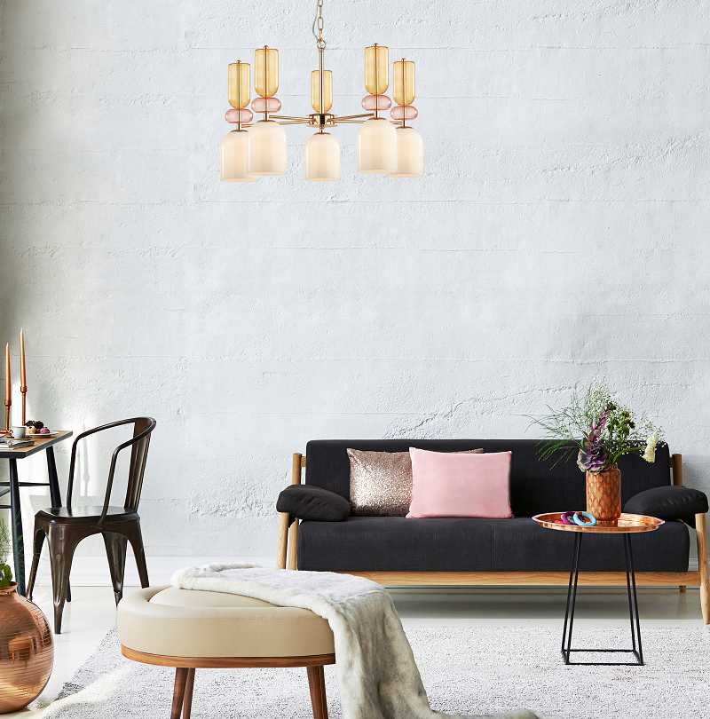 Если вы решили купить люстру, обращайте внимание не только на расцветку плафонов, но и на то, в какой цветовой гамме выполнен корпус и арматура светильника. Если модель сделана в оттенке металлик, ее цвет должен сочетаться с оттенком ручек шкафов, стола, ножками стульев и другими микроэлементами, которые уже есть в комнате.