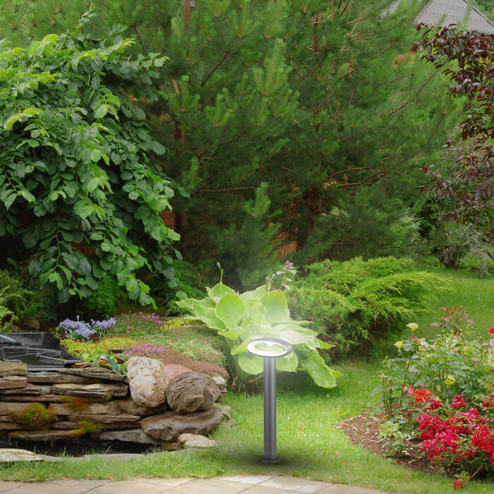 Стандартные ландшафтные светильники-столбики не очень бросаются в глаза, когда светло, зато дарят яркие световые эффекты в темное время суток. Их можно спрятать глубоко в зелени растений или расставить в определенном порядке, чтобы они выглядели как декоративный элемент ландшафтного дизайна.