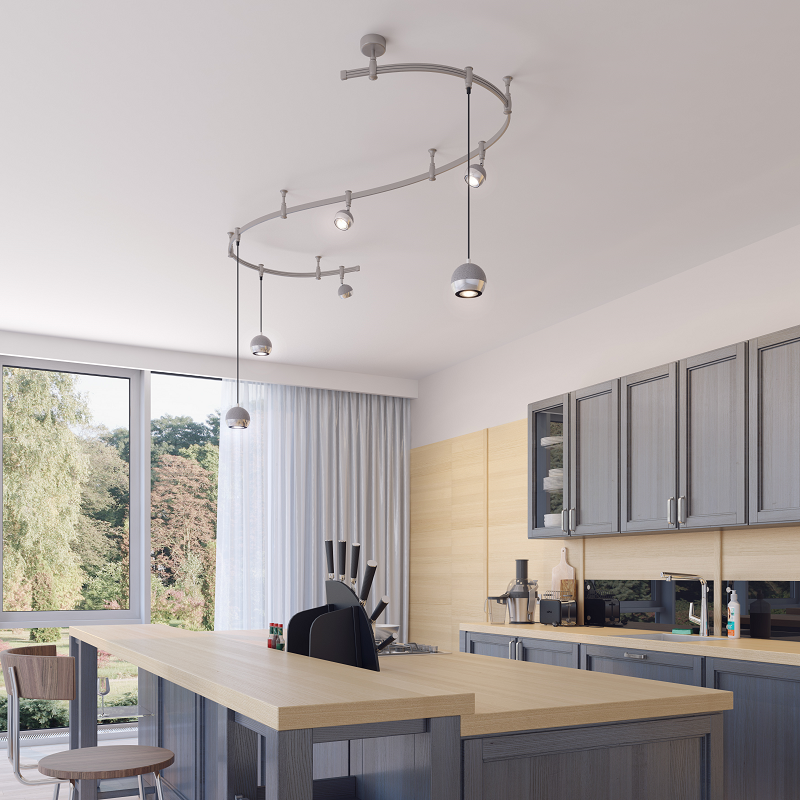 Треки могут использоваться и как основной источник света, и как дополнительный акцентный световой сценарий – например, для подсветки барной стойки, диванной группы или обеденной зоны.