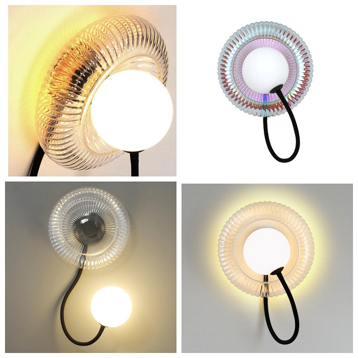 С помощью бра можно добавить в пространство не только свет, но и цвет. Модели настенных светильников из яркого прозрачного стекла используют в лаконичных современных интерьерах в качестве акцентов. Цветные светильники способны оживить даже самый простой и скучный интерьер в базовых серо-бежевых оттенках. Дозировать цвет можно в зависимости от личных предпочтений, устанавливая в комнате либо все светильники серии (люстра, бра, торшер, настольная лампа), либо только некоторые из них.