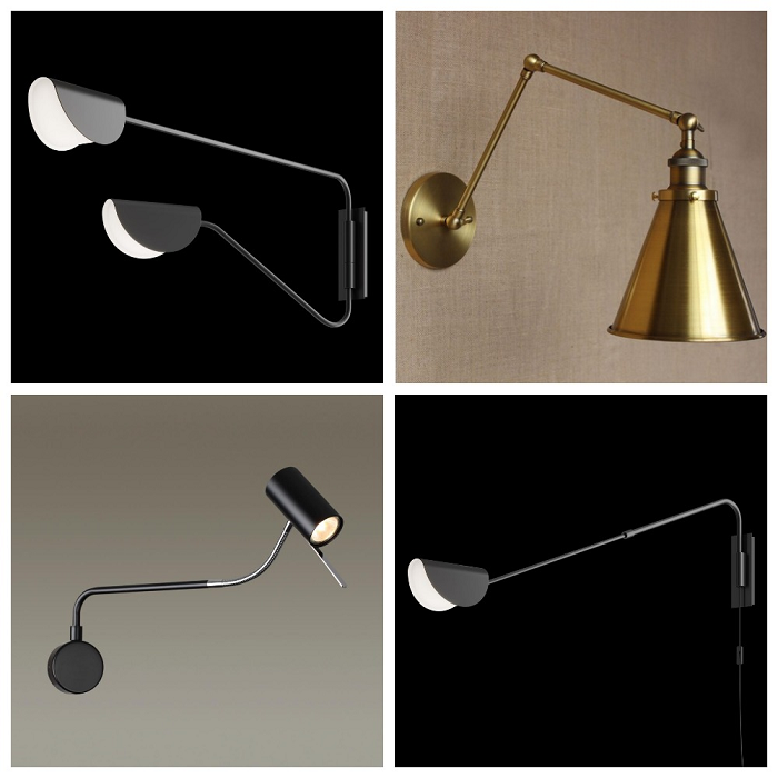 Гибкие бра – необычные, стильные и очень функциональные настенные светильники, позволяющие направлять источник света в нужную вам сторону. Удлиненная подвижная «ножка» с лампочкой легко гнется и фиксируется в нужном положении, благодаря чему гибкие бра отлично подходят для чтения и занятий творчеством. Для удобства некоторые модели гибких бра оснащены полочкой и зарядным устройством для телефона. Установив такое бра около кровати, у вас всегда будет яркое направленное освещение, при котором комфортно полежать с книгой, а также специальное отдельное место для смартфона.